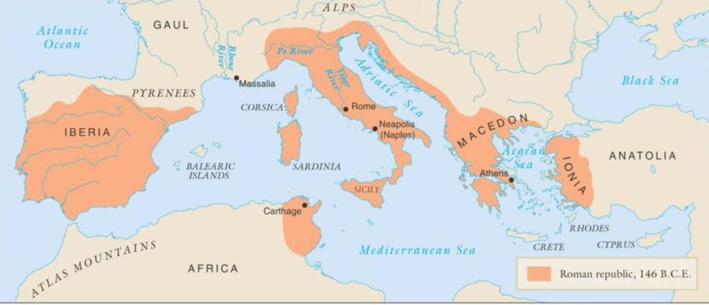 Experts who study the effect of demography on international politics would say that a shortage of young men will lead to a country being more stable and less likely to get involved in wars. This theory, known as the ‘demographic peace’ model, helps explain why bloodier wars tend to have longer intervals between them when compared to smaller conflicts. Yet the Roman Republic did precisely the opposite of what the demographic peace model would suggest. The Roman army didn’t demobilize at the end of the Second Punic War. Instead, just two years later, the Romans sparked another major war by invading neighboring Macedon. For the next fifty years, Rome engaged in a series of expansionist conflicts across the Mediterranean, conquering large parts of modern-day Greece, Spain, Turkey, and North Africa.