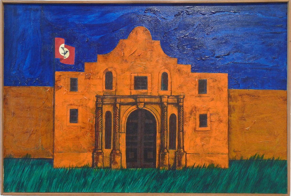 The flag Reyes painted over the Alamo is that of United Farm Workers, a largely hispanic labor union fighting against unfair treatment workers in Texas and the rest of the American south. Reyes painting attempts, in the words of the piece’s curator, to contextualize “Anglo aggression instead of Mexican tyranny or cruelty” in the story of the Alamo.