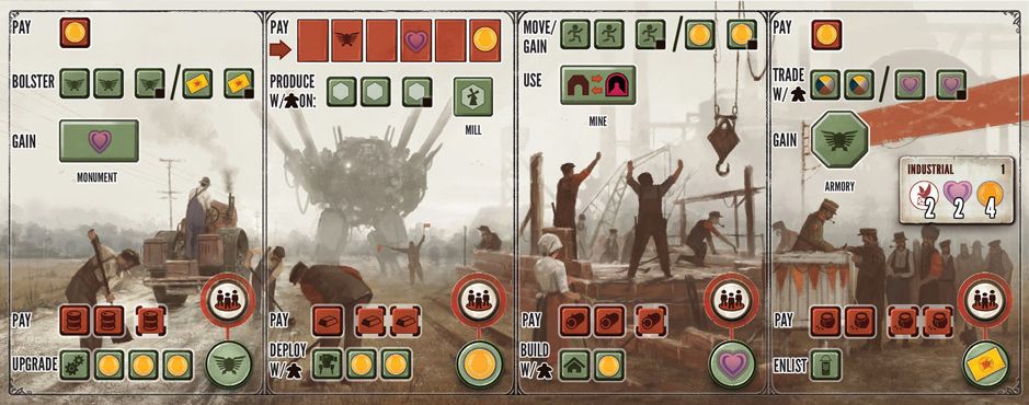 Advertisers are often careful to subtly market their games to either an euro or American audience. An interesting example of failed marketing is the game Scythe. Scythe presents itself as an alternate history of World War I-era Europe, where steampunk battle mechs trundle through Eastern Europe as rival powers battle. This sounds like a great setup for an American style game, but players are often shocked to open the rules and discover that Scythe is nothing of the sort. The bulk of the game is moving meeples (who represent peasants) around the map collecting resources like wheat, steel, and oil. The bulk of the mechanics involve customizing the player’s action chart so they can take more and effective actions. The mechanics are so classically Euro that the game could be about anything. In short, Scythe is a Eurogame branding itself as an American game.